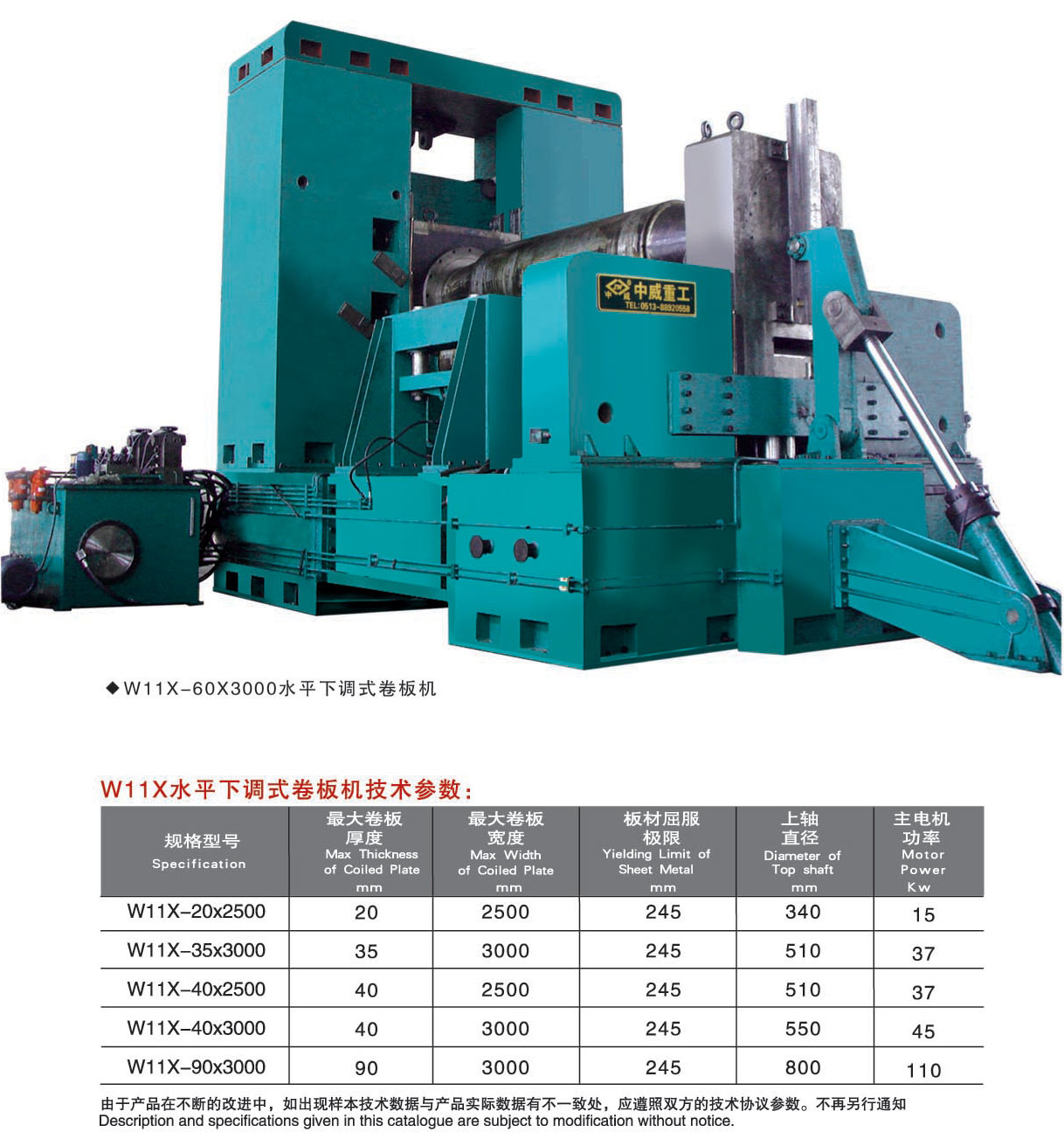 W11X-系列水平下调式卷板机